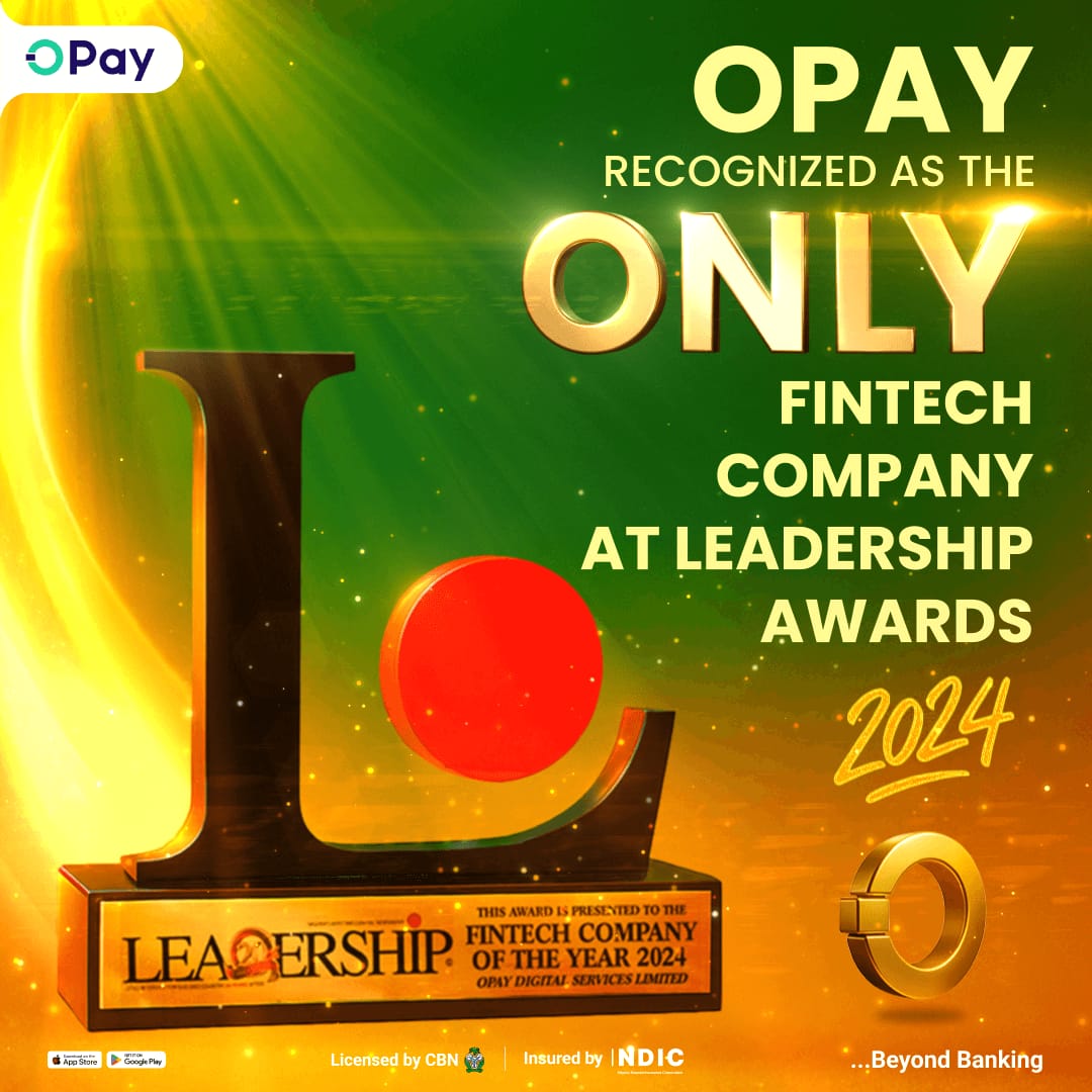 OPay has been awarded the Fintech Company of the Year 2024 by Leadership in a ceremony it organized in Abuja on April 8.